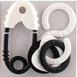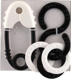 Mustvalgete kõrinade komplekt, ideaalne väikelaste nägemis- ja kuulmismeele stimuleerimiseks. Täiuslik suurus väikestele kätele.