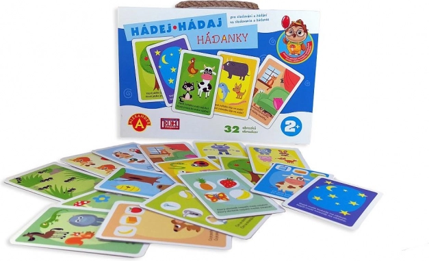 - 16 suurt värvilist kaarti (32 pildimõistatust), tšehhi ja slovaki juhend, tugev sangaga karp