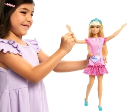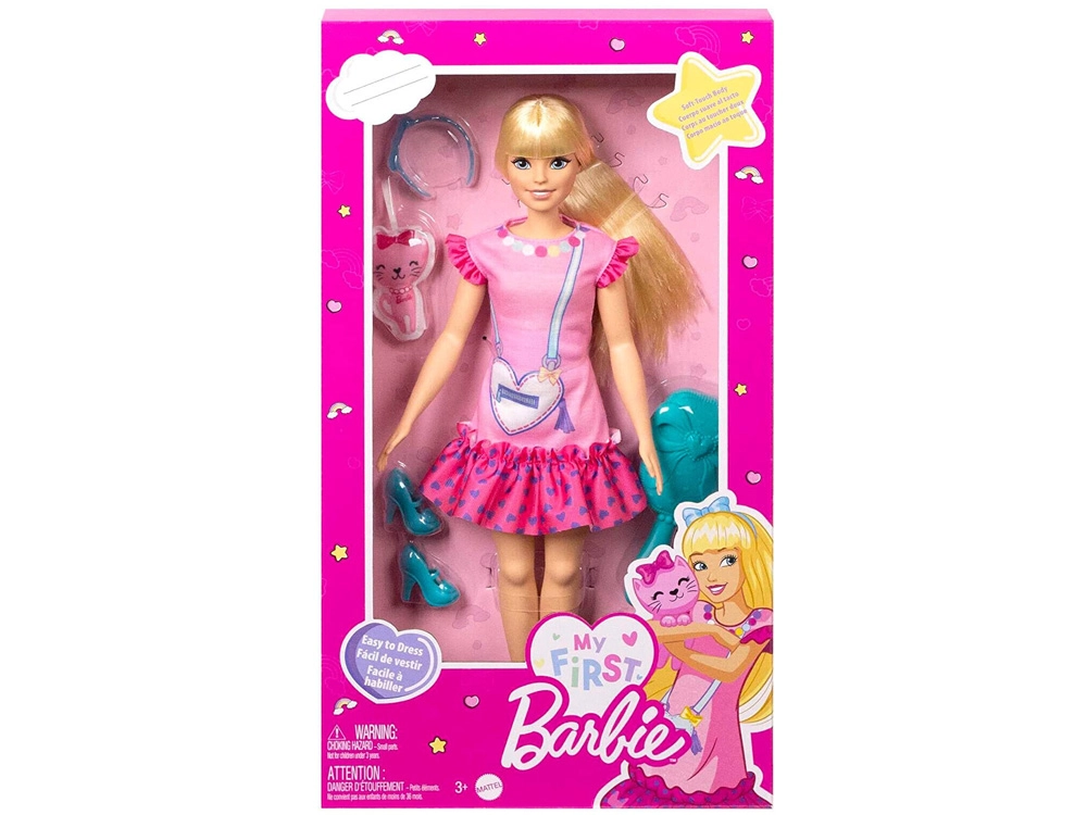 Astuge maailma, kus algab sõprus ja fantaasia ei tunne piire. Minu esimene BARBIE seeria nukk on suurem, kerge ja meeldivalt painduv, et väikesed käed saaksid seda hõlpsasti hoida, riietada ja poose seada. Roosat kleiti kaunistavad mängulised detailid, nagu volangid ja südamekujulise käekoti graafika; komplekti kuuluvad sobiv peapael ja kingad. Pikad blondid juuksed kutsuvad kammima ja soenguid looma, mis arendab loomulikult peenmotoorikat.