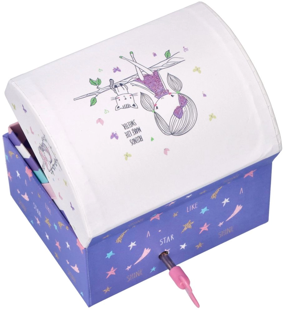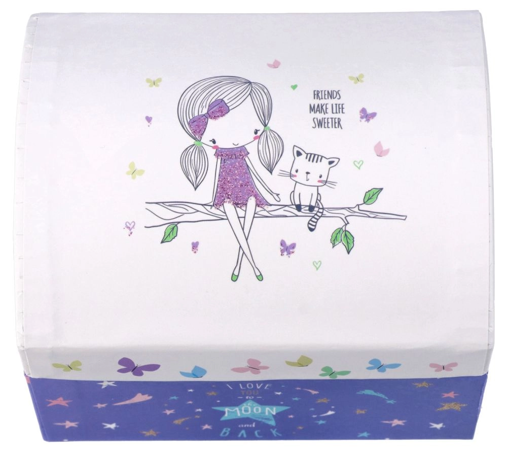 See kaunis muusikakarp teemaga "Sõbrad" on ideaalne kingitus lastele alates 6. eluaastast. Värviliste mustrite ja võluvate piltidega kaunistatud karp pakub lisaks hoiuruumile ka meloodiat, mis rõõmustab nii silma kui kõrva.