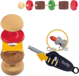 Komplektis on 18 tarvikut, sh hamburgerid, šašlõkid, tangid ja muud lisad maksimaalseks mängurõõmuks.