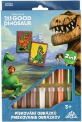 Alustage musta liivaga kontuuride tegemisest, seejärel jätkake teiste värvidega vastavalt eeskujule. Valminud pildid saab turvaliselt hoiustada komplektis olevatesse ümbristesse. See tegevus stimuleerib suurepäraselt laste loovust ja annab ruumi isikupäraseks eneseväljenduseks. Lisaks sobib see erinevateks kinkimiseks.