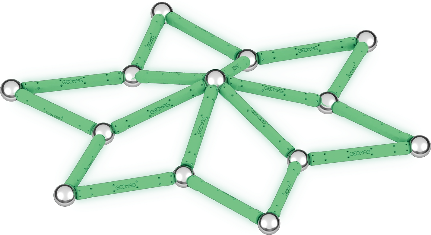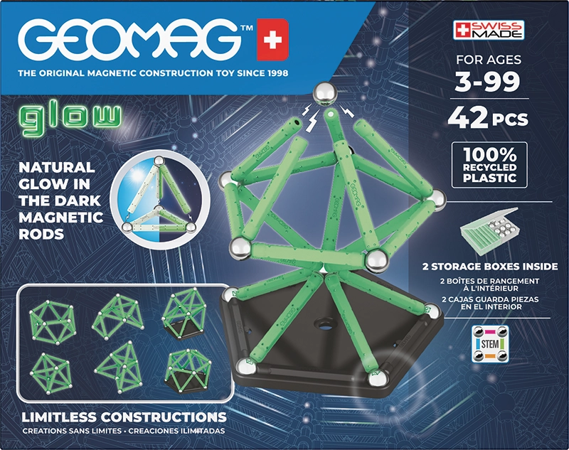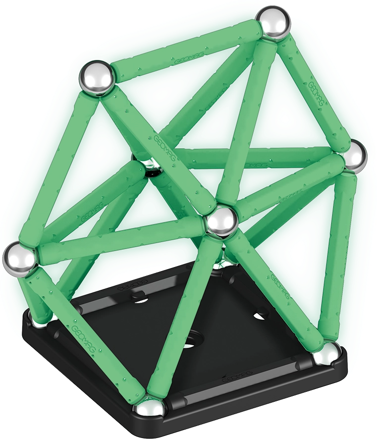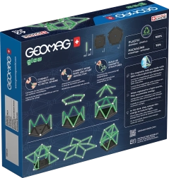 GEOMAG Glow on originaalne magnetehituskomplekt, mis võimaldab luua piiramatult erinevaid konstruktsioone magnetpulkade ja terasest kuulide abil. Fosforestseeruvate detailide tänu säravad sinu mudelid pärast valgusega laadimist pimedas kaunilt – ideaalne lõbusateks katsetusteks ja pilkupüüdvaks õppimiseks.