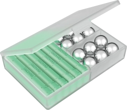 - 20 helendavat magnetpulka, 20 teraskuuli, 2 stabiilset alust (ruut ja viisnurk) musta värvi