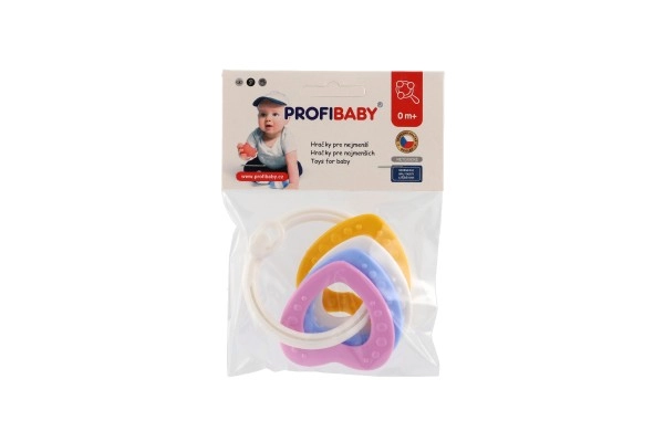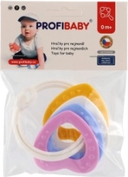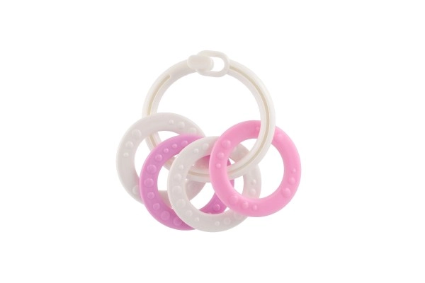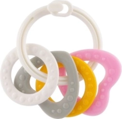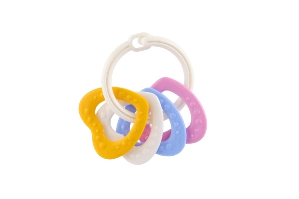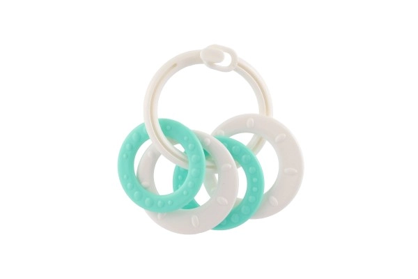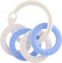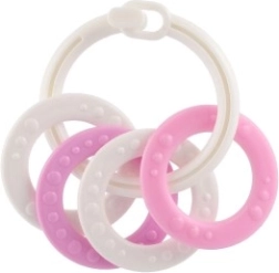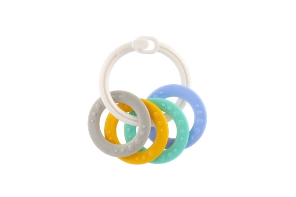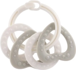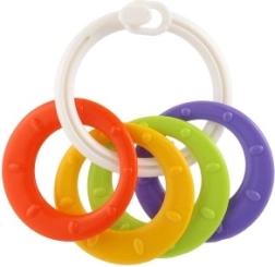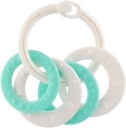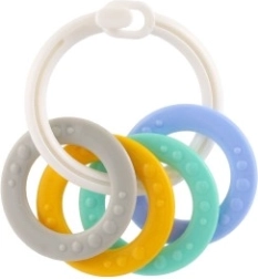 Sobib lastele alates 3. elukuust. See närimismänguasjade komplekt sisaldab värvilisi plastist rõngaid, mis on mitte ainult kerged, vaid aitavad kaasa ka peenmotoorika arengule. Tänu mitmekesistele struktuuridele ja vormidele pakub mänguasi mitut meelt stimuleerivaid kogemusi, mis on mõeldud lapse hammaste lõikumise perioodiks.