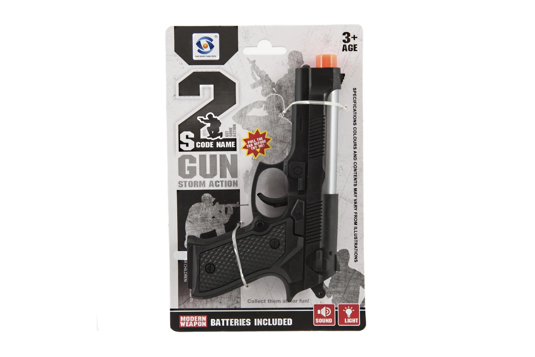See realistliku välimusega plastikpüstol rõõmustab kõiki väikseid märulimängude fänne. Tänu valgus- ja heliefektidele pakub see veelgi rohkem lõbu ning toetab fantaasiat ja loovat mängu. Pakendis on kõik vajalik – 2× AG10 patareid on juba kaasas.
