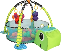 See multifunktsionaalne matt pakub beebile turvalist avastamisruumi juba esimestest päevadest. Kahe kaare ja riputatavate mänguasjade abil õpib laps haarama, jälgima ja liigutusi koordineerima. Võrkküljed loovad hõlpsasti basseini 30 värvilise palliga, mis innustab iseseisvale istumisele ja meeltepõhisele mängule.