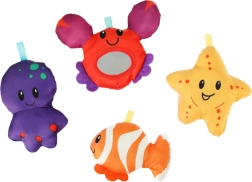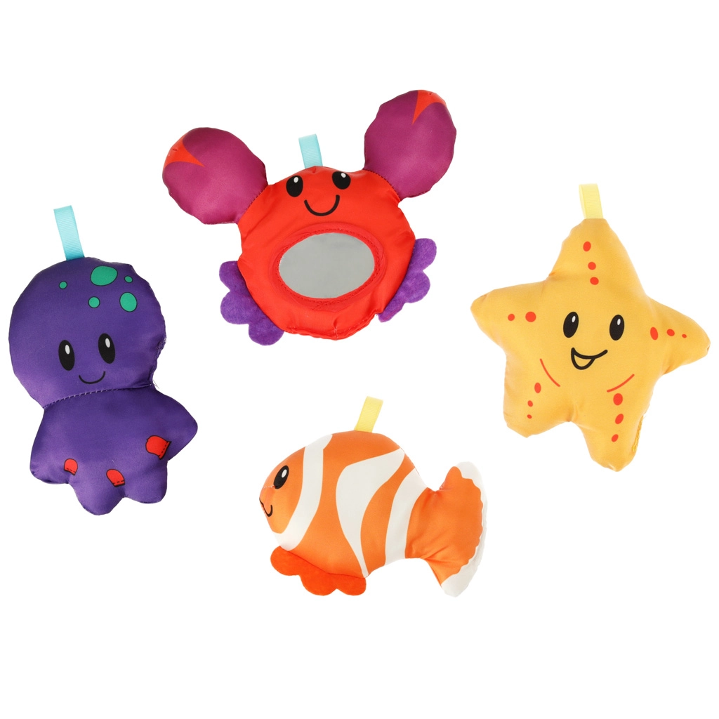 Komplekti kuuluvad pehmed mänguasjad kalakese, kaheksajala, meritärni ja peegliga krabi kujul, mis arendavad nägemist, kompimist ja tähelepanu. Kerge konstruktsioon käib kiiresti kokku, sobides suurepäraselt reisidele ja väiksematesse ruumidesse.
