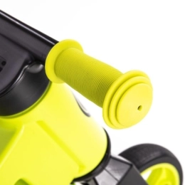 Pehmed rehvid tagavad vaikse sõidu ilma põrandajälgedeta, need ei torgandu läbi ega vaja pumpamist. Lenksu piiraja hoiab ära ülekeeramise ja kaitseb lapse kõhtu, eriti pehmed laienenud otstega käepidemed kaitsevad käsi. Kõrguse reguleerimine kahel asendil mõlemal teljel kohandab jooksuratta nii väiksematele kui suurematele lastele.