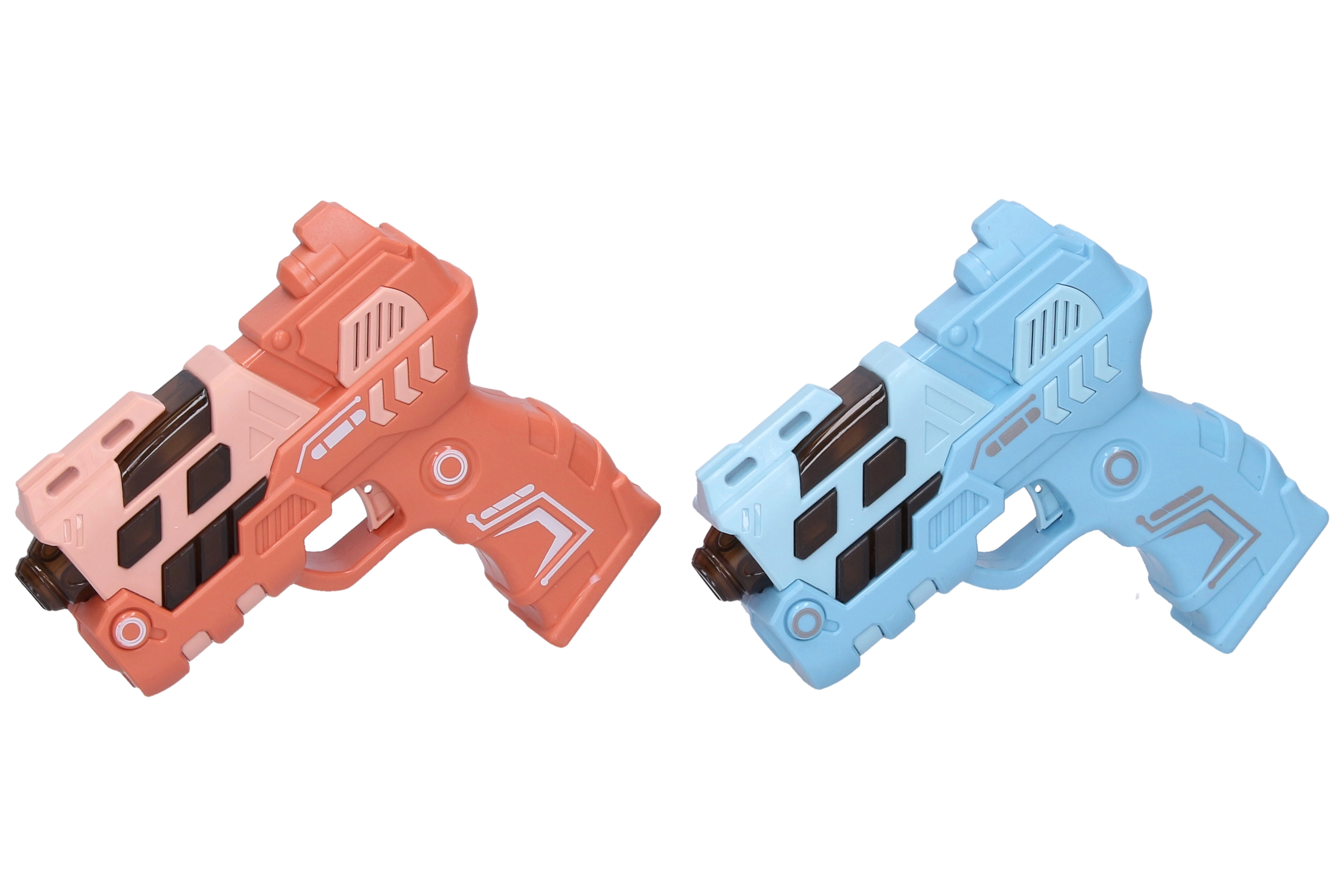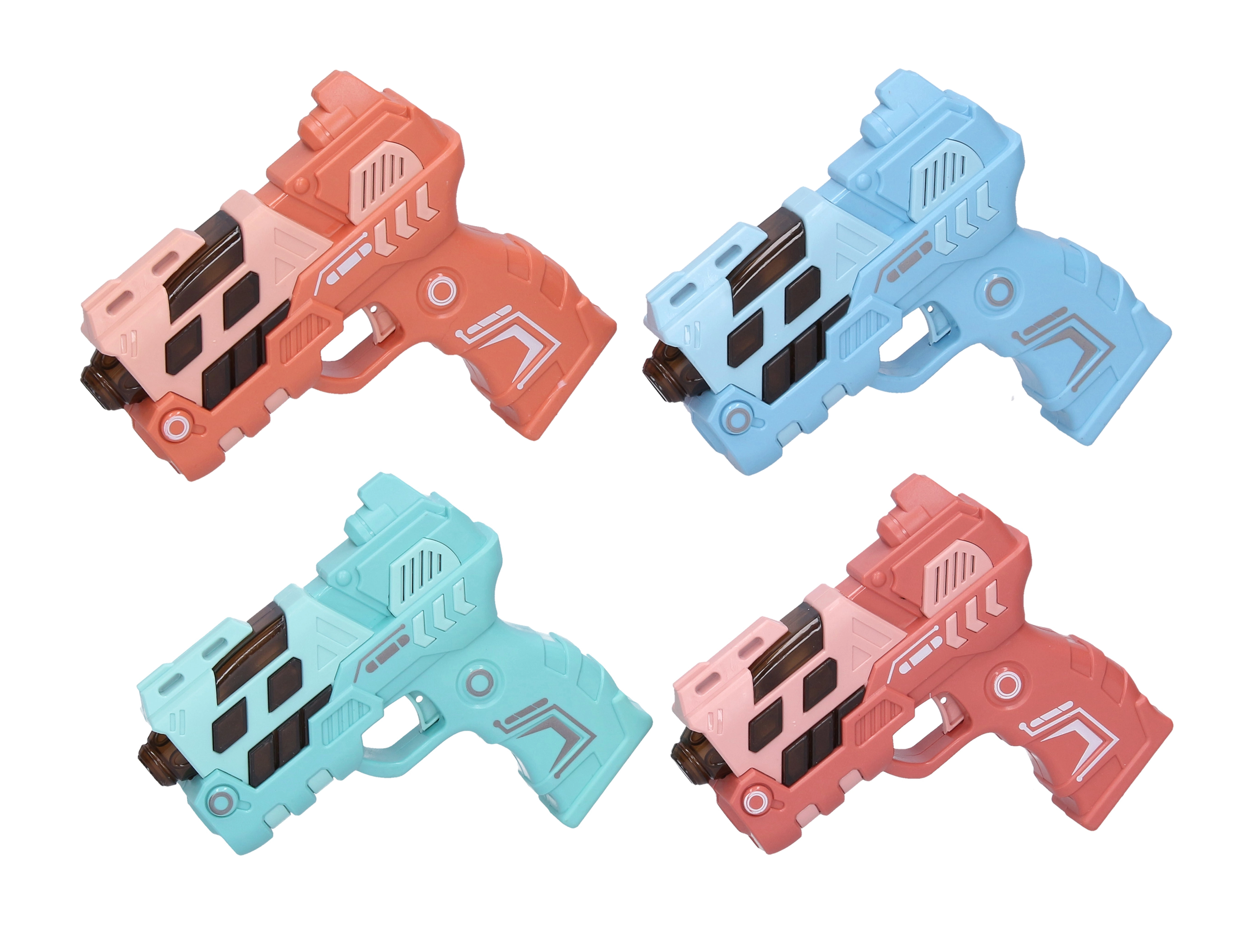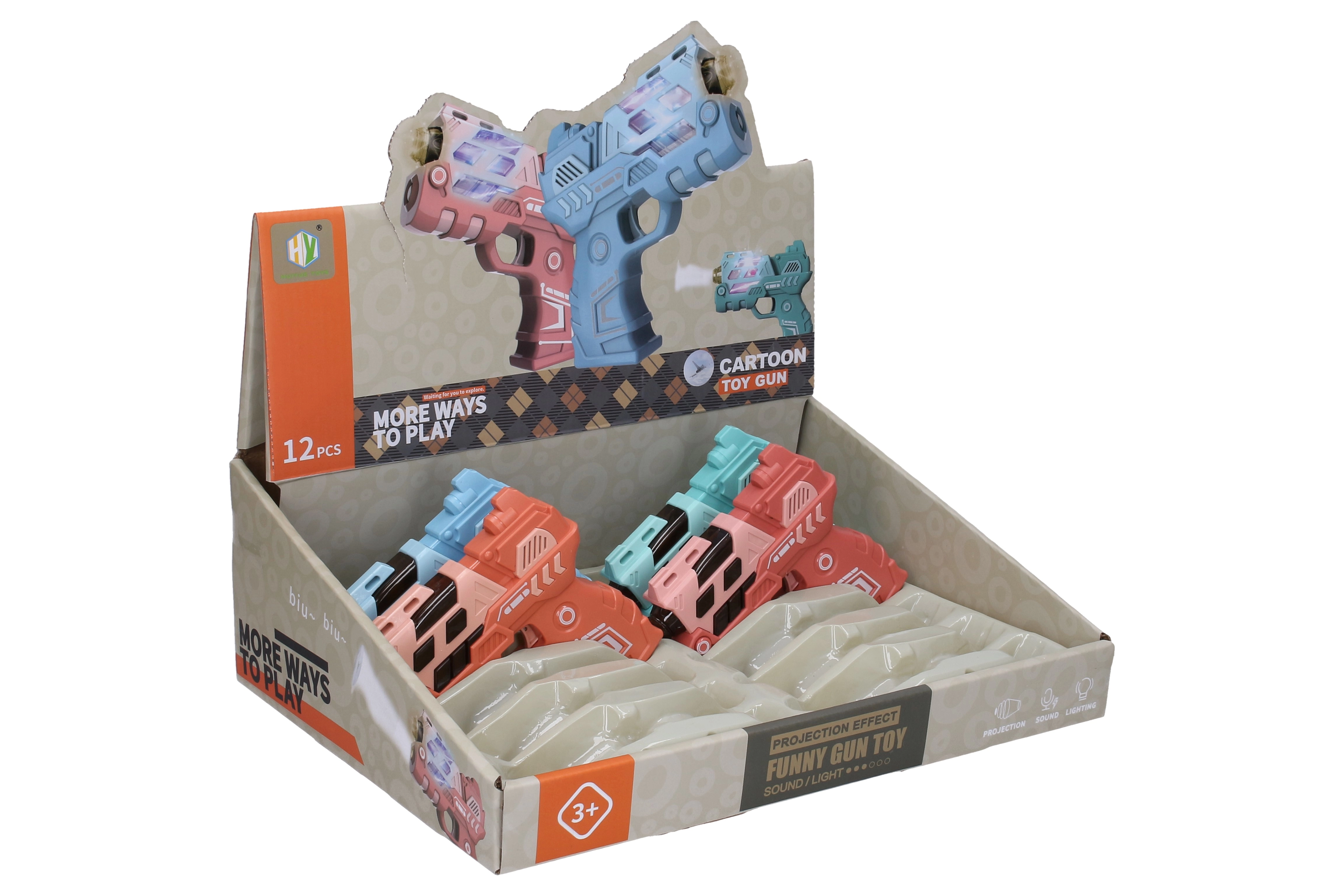 Lõbus 12 cm pikkune laste püstol pakub valgus- ja heliefekte ning ka pildi projektsiooni veelgi suurema põnevuse jaoks. Saadaval 4 värvitoonis (sinine, roheline, oranž, roosa). Toide: 2× AAA patareid, mis ei kuulu komplekti.