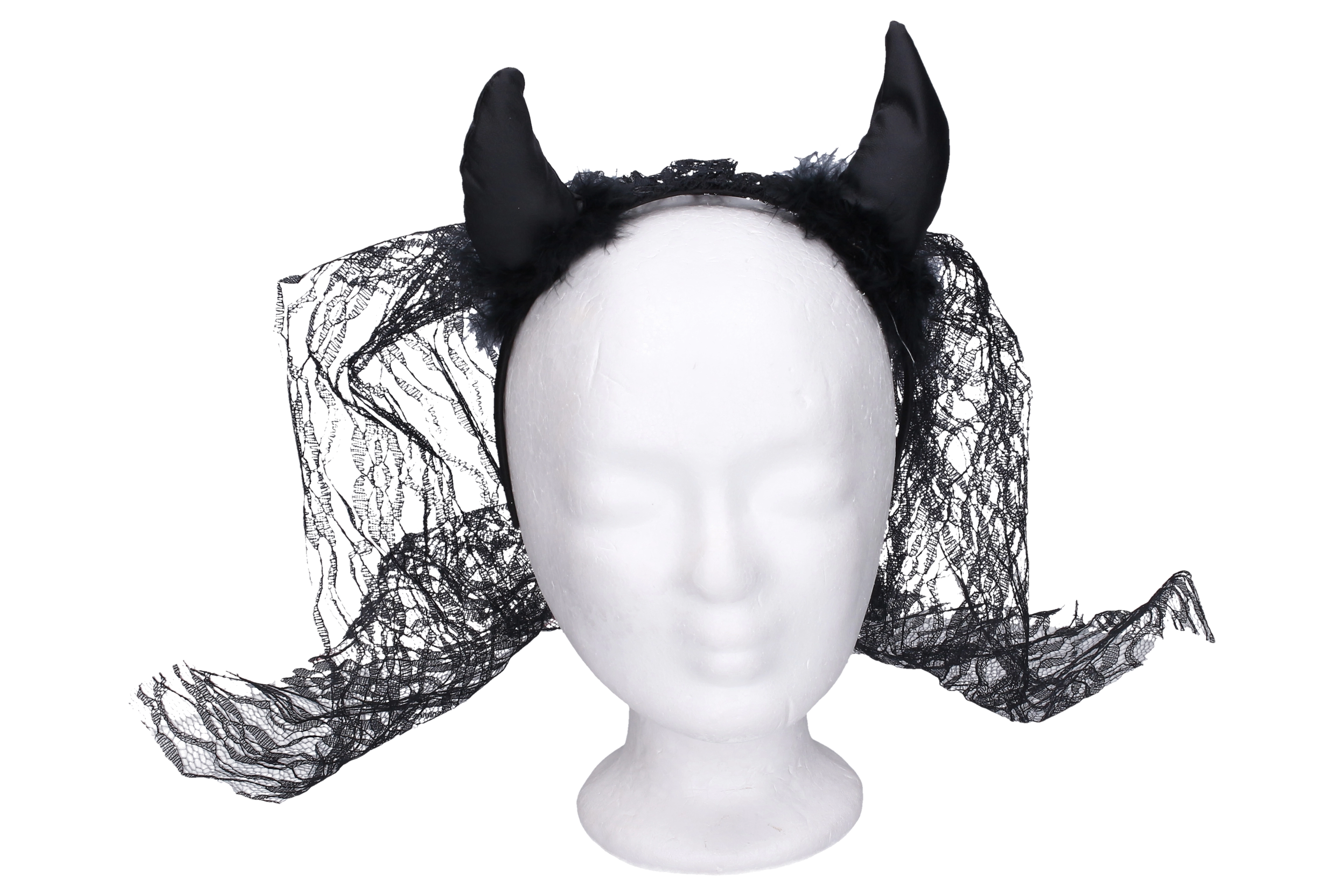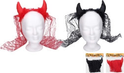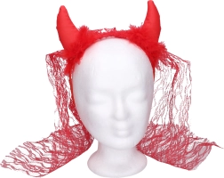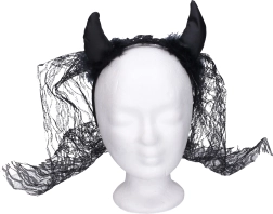 Lisa oma kostüümile põrgulik sarm mustade kuradisarvede ja looriga. Praktiline peapael tagab mugava ja kindla püsimise juustes, elegantne loor lisab salapärase ja väljendusrikka efekti. Suurepärane karnevaliks, Halloweeniks, firmaõhtuteks ja kooliüritusteks.