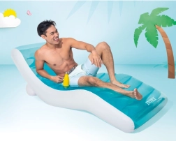 Naudi lõõgastust vee ääres ja aias INTEX 56874 täispuhutava lamamistooliga. Ergonomiliselt kujundatud pind kohandub täiuslikult kehaga, kaks sõltumatut kambrit tagavad stabiilsuse vees ning mugavad mõõtmed võimaldavad mugavat puhkust ka täiskasvanutele. Kerge konstruktsioon võimaldab kiiret täispumpamist ja kokkupakkimist ning stiilne disain läbipaistva pealmise kihiga mõjub efektseina nii basseini ääres kui ka rannas.