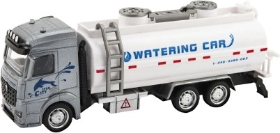 Hallikabiini ja valge paagiga kastmisauto mudel, mis võimaldab teemakohast mängu veega seotud elementidega.