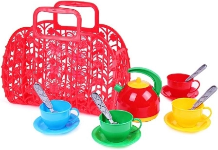Värviline laste teekomplekt on ideaalne väikestele perenaistele! See komplekt sisaldab kõike, mis on vaja teelahvatu korraldamiseks, ning on paigutatud praktilisse plastikkotti, mis hoiab üksikosad kadumast.