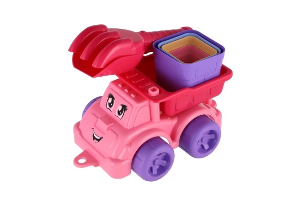 Värviline plastist autoke rõõmsa ilmega on ideaalne liiva vedamiseks ja lapse fantaasia arendamiseks.