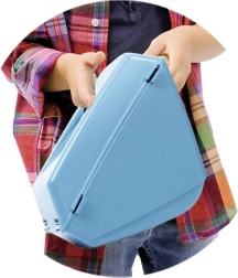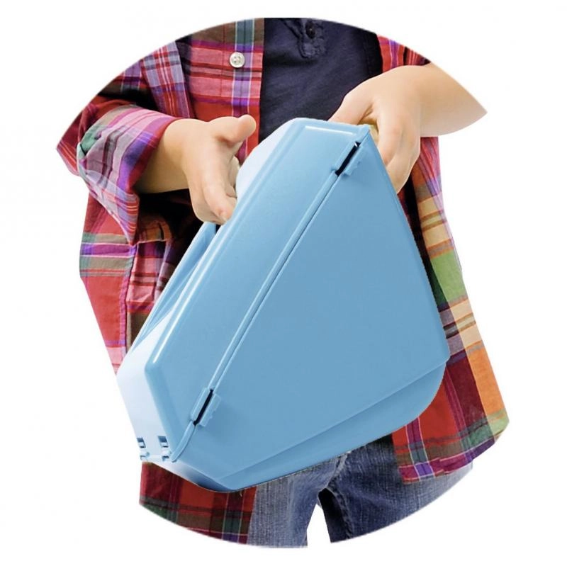 Sinise kasti saab lihtsalt eemaldada ja sangale riputada. Lapsed saavad „kõrre niitmist koguda” ning arendada oma motoorseid oskusi.