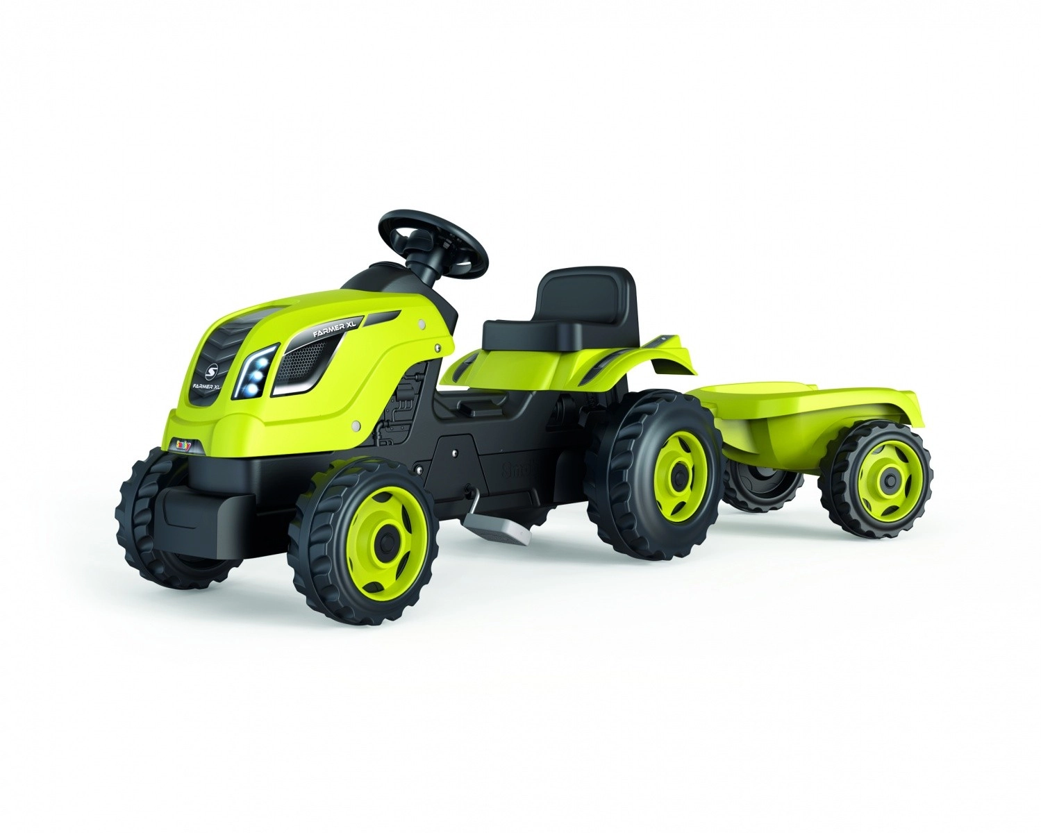 Falki pedaaltraktor Claas, roheline, järelhaagise ja signaaliga, lastele alates 2. eluaastast