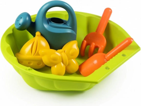 Komplektis on reha, kastekann, labidas ja 2 liivavormi, mis lisavad mängule loovust ja lõbu.