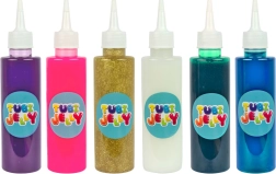 - 6 geelvee pudelit (150 ml) värvides: roosa, valge, lilla, türkiissinine, sinine ja sädelev