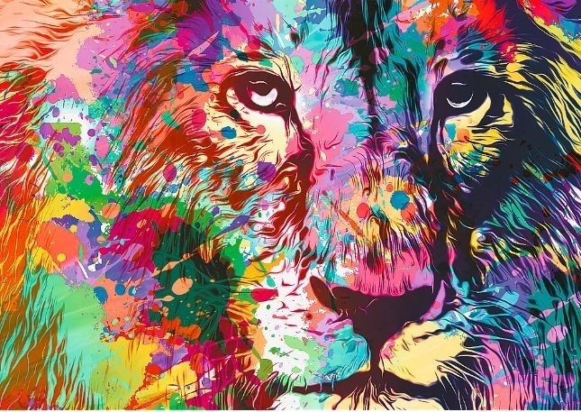 - Motiiv: Värviline lõvi – silmapaistev, modernne, värviküllane illustratsioon.