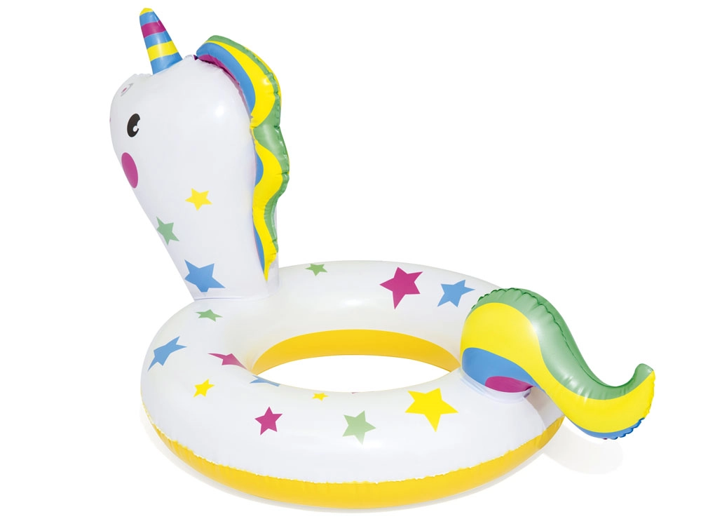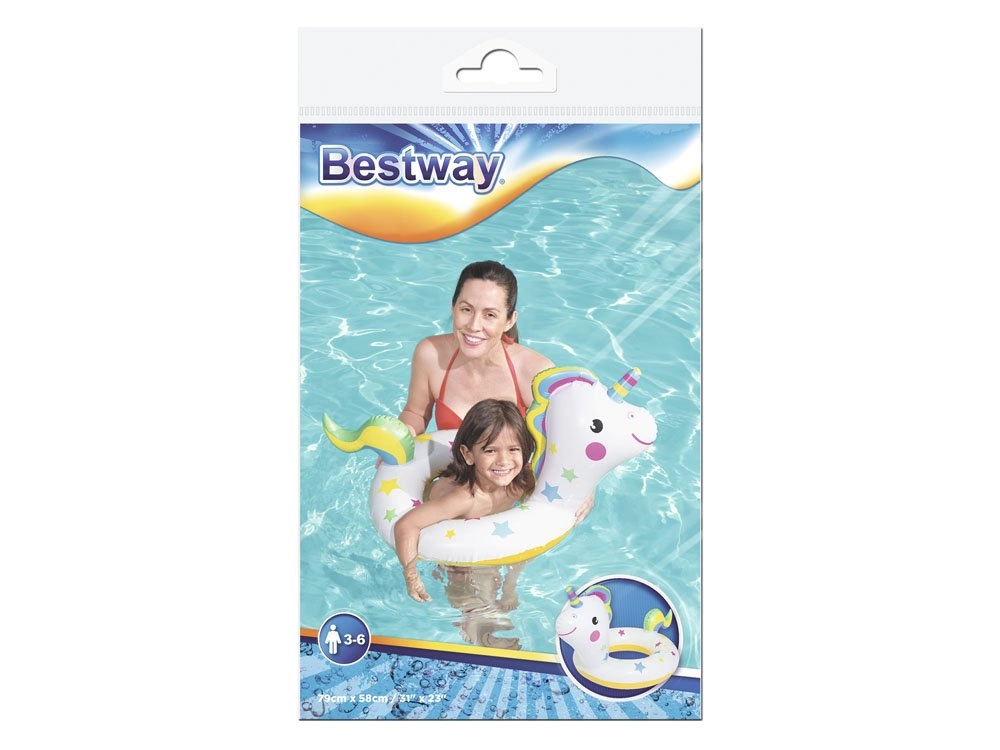 BESTWAY laste ujumisrõngas rõõmsa ükssarviku kujuga aitab kasvatada vees enesekindlust ja pakub rohkelt lõbu. Elav tähemustriga graafika püüab pilku, vastupidav materjal tagab pika kasutuse nii basseinis kui ka mere ääres.
