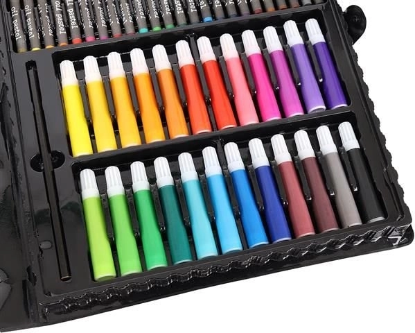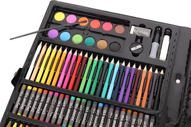 Komplekt sisaldab laia valikut kunstitarbeid, alates värvipliiatsitest kuni akvarellideni, muutes selle sobivaks väga erinevateks loovprojektideks.