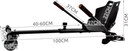 Vastupidav metallraam ja töökindlad materjalid on loodud turvalisuse ja pika kasutusea tagamiseks. Sujuv pikkuse reguleerimine 40–60 cm võimaldab täpset kohandamist sõitja kehaehitusele, samal ajal kui pöörlev esiratas tagab sujuva manööverdatavuse. Kokkupanek on kiire ja tööriistadeta – tugevate klambrite ja reguleeritavate takjarihmade abil kinnitad lisaseadme hõlpsalt eri tüüpi hoverboardidele.
