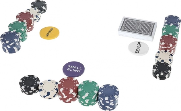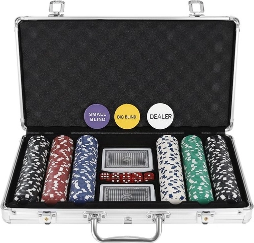 Komplekti kuuluvad ka funktsionaalsed rolližetoonid DEALER, SMALL BLIND ja BIG BLIND mängu selgeks korraldamiseks, 2× 54 kaarti sujuvaks pakkide vahetuseks ning 5 täringut lisalauamängudeks. Komplekt sobib suurepäraselt kodumängudeks, pidudeks ja sõbralikeks mõõduvõttudeks.
