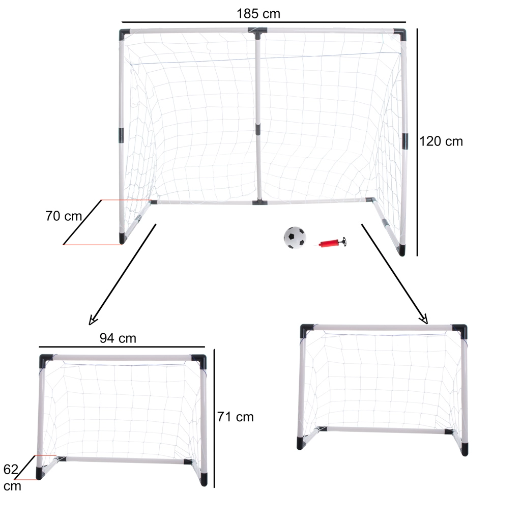 Värava saab kokku panna üheks suureks või kaheks väikeseks. Kohandage mänguruumi ja mängijate vajaduste järgi.
