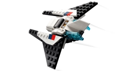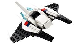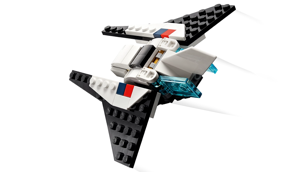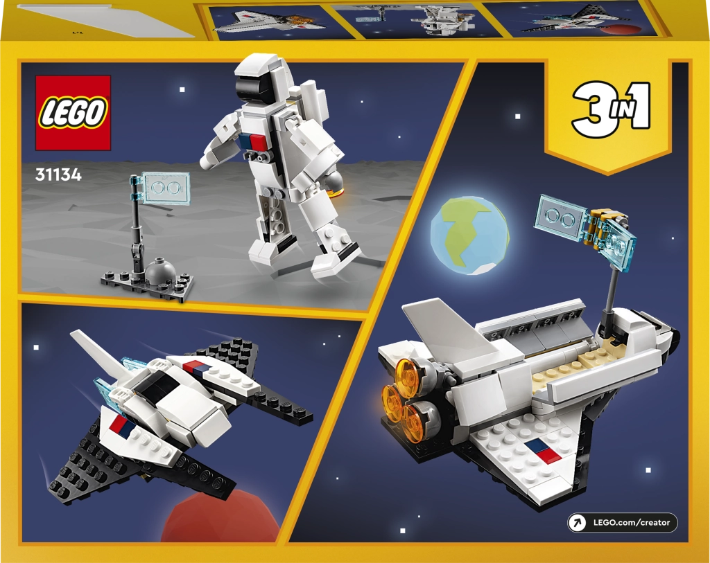 See LEGO Creator 3-ühes komplekt sisaldab kolme erinevat mudelit. Saad ehitada kosmosesüstiku, ümber ehitada selle liikuva astronautfiguuri jaoks reaktiivrepgaga ja planeeti torgatava lipuga või luua muljetavaldava kosmoselaeva mudeli.