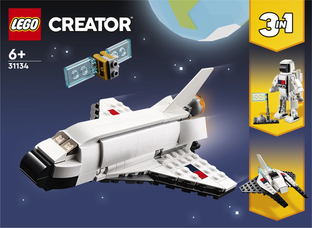 LEGO Creator 3-ühes kosmosesüstik on vahva ehituskomplekt alates 6-aastastele lastele, mis toob kaasa kosmilised seiklused. Süstikul on avatav luuk koos väljatõmmataval õlal asuva satelliidiga, mida saab eraldada eraldi mänguks.