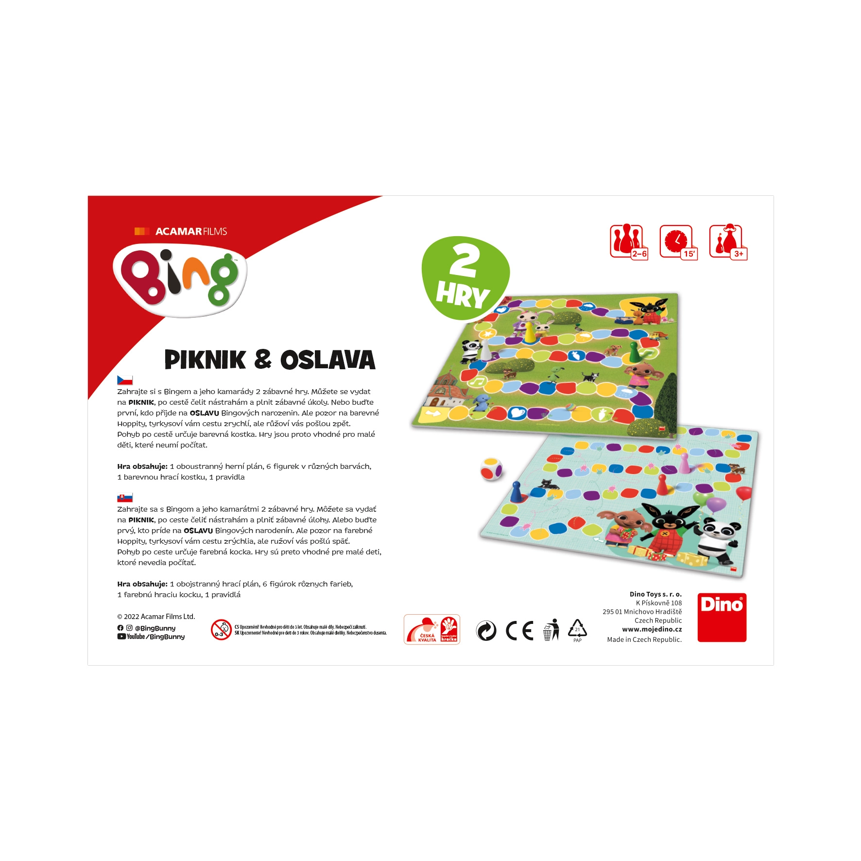 Astu BINGi ja tema sõprade maailma kahe lauamängu komplektiga ühes. Kas lähed piknikule täis ülesandeid ja üllatusi või jõuad esimesena sünnipäevapeole? Värvitäring määrab liikumise rajal, seega saavad mängu nautida ka lapsed, kes veel ei oska lugeda ega arvutada. Eriväljad värviliste Hoppitydega kiirendavad teekonda või saadavad sind tagasi – põnevus on garanteeritud!