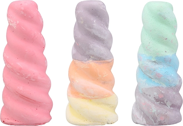 Värviline kolmest ükssarviku sarve kujulisest kriidist koosnev komplekt rõõmustab nii lapsi kui täiskasvanuid. Ideaalne joonistamiseks kõnniteele ja tahvlile, neid on lihtne käes hoida ning need pakuvad erksaid värve ja sujuvat joont.