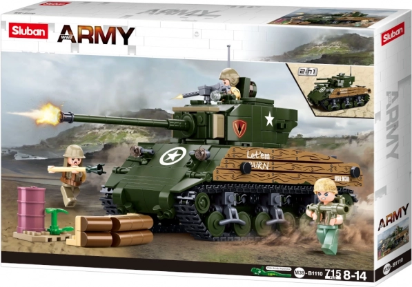 Sukeldu ajalooliste lahingute maailma realistliku Sluban Army WW2 M4A3 Sherman ehituskomplektiga. Ehita kaks erinevat versiooni tuntud Ameerika keskmisest tankist, laienda oma kollektsiooni või loo omaloomingulisi stsenaariume. Komplekt rõõmustab nii tehnikahuvilisi kui ka lapsi alates 8. eluaastast.