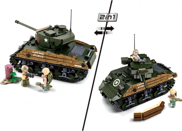 Ehita legendaarne Ameerika tank M4A3 Sherman ja naudi tunde põnevat ehitamist Sluban Army WW2 komplektiga. Komplekt pakub 2 kokkupaneku varianti, 715 klotsi ja 3 figuuri liigutatavate osadega. Detailid on ühilduvad LEGO, COBI ja Mega Bloksiga ning valmistatud vastupidavast ja ohutust ABS-plastist.