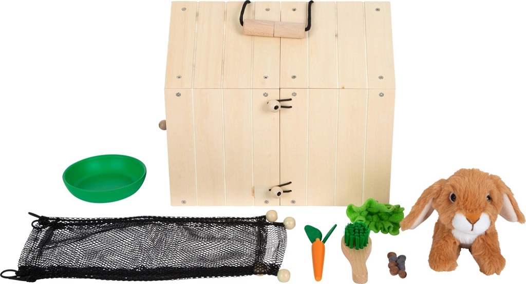 Komplekti kuuluvad pehmest materjalist küülik ja praktilised tarvikud: väike hari-kühvel, kauss, puidust porgand, salatileht ning vildist „pabulad“ autentsete hooldusstseenide jaoks. Komplekt on suurepärane alternatiiv lastele, kes ei saa veel päris lemmiklooma, ning aitab arendada sotsiaalseid ja emotsionaalseid oskusi.