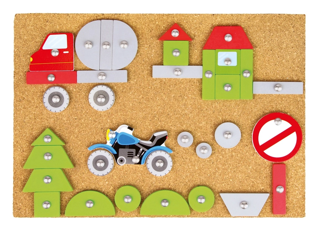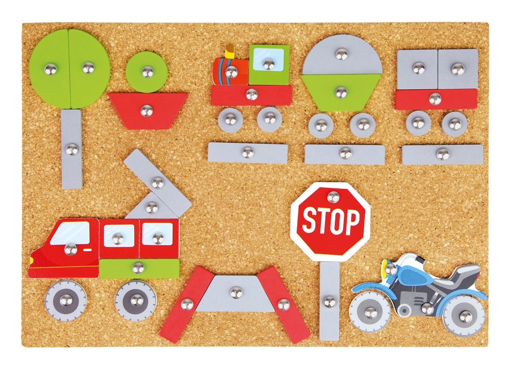 See lõbus ja hariv koputusmäng on ideaalne väikestele loojatele. Lapsed saavad kujundada oma transpordivahendeid ja kinnitada need korgist alusele haamri ja naelikeste abil. Värvilised ja trükitud detailid pakuvad lugematul hulgal kombinatsioone ning toetavad kujutlusvõimet.