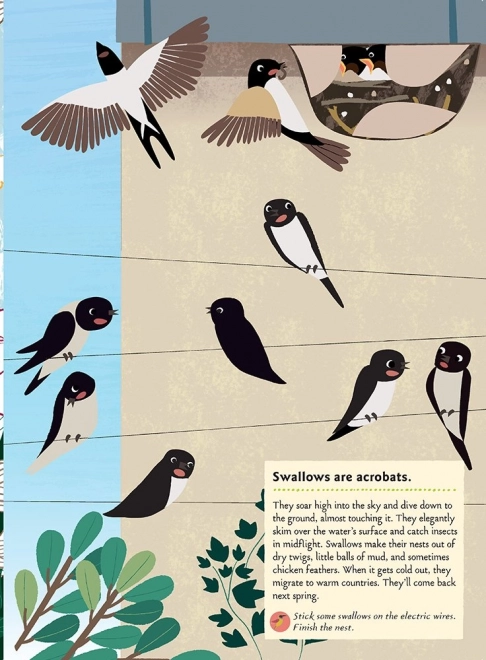 Avasta lastega alates 5. eluaastast lindude paeluv maailm loova tegevusraamatuga. Olivia Cosneau kaunilt illustreeritud raamatus on 104 kleepsu, 25 lõbusat tegevust ja lühike viktoriin. Lapsed õpivad mänguliselt tundma liikide mitmekesisust – alates öökullidest ja pääsukestest kuni kolibrite, pelikanide ja pingviinideni. Raamat on inglise keeles ja vastab kehtivatele Euroopa ohutusnormidele.