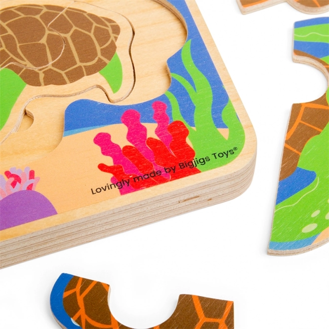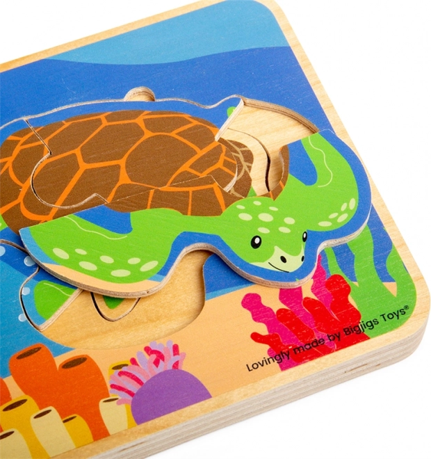 See kaunilt illustreeritud puidust pusle näitab lastele selgelt, kuidas kilpkonn kasvab – alates munast, läbi poja kuni täiskasvanud kilpkonnani. Erineva suurusega tükid asetatakse järk-järgult, nii et lapsed avastavad iga järgmise arenguetapi samm-sammult.