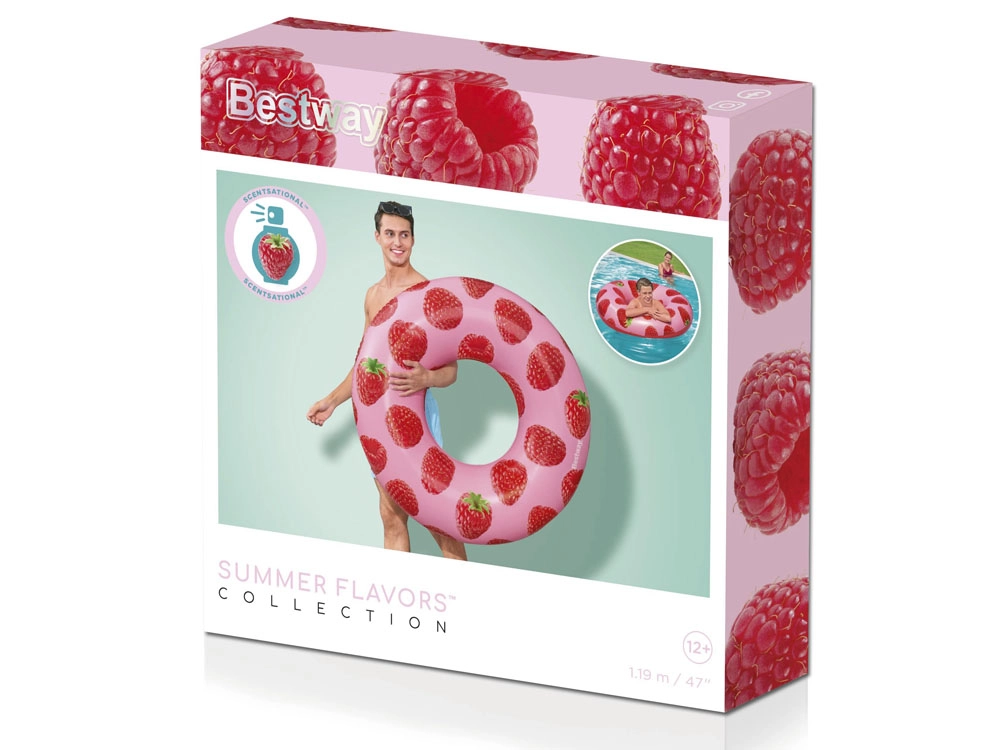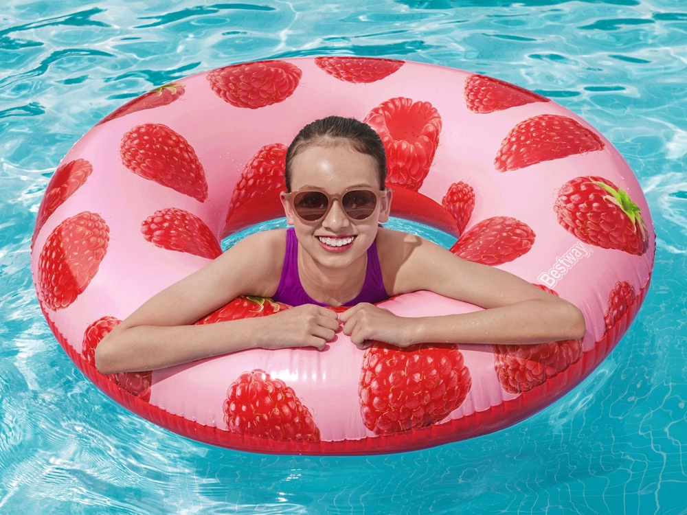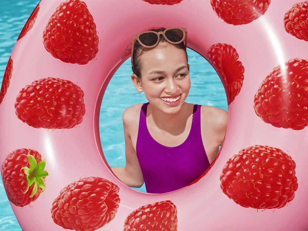 Küpsete vaarikate lõhn, mänguline disain ja mõnus hõljumine veepinnal – see Bestway täispuhutav rõngas toob igasse suplusesse suvise meeleolu. Õrnalt parfumeeritud materjal rõõmustab meeli ilma liialt tugev olemata ning vaarikamuster püüab pilku ja meelitab haistmismeelt.