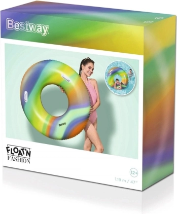 Naudi suve täiel rinnal selle vikerkaarevärvilise täispuhutava rõngaga tootjalt BESTWAY, diameetriga 119 cm. Tänu kahele tugevatele käepidemele sobib algajatele ja lastele alates 12. eluaastast. Vastupidav PVC-materjal ja turvaventiil tagavad pika kasutusea ja lihtsa kasutamise. Ideaalne basseini ja veekogu äärde.