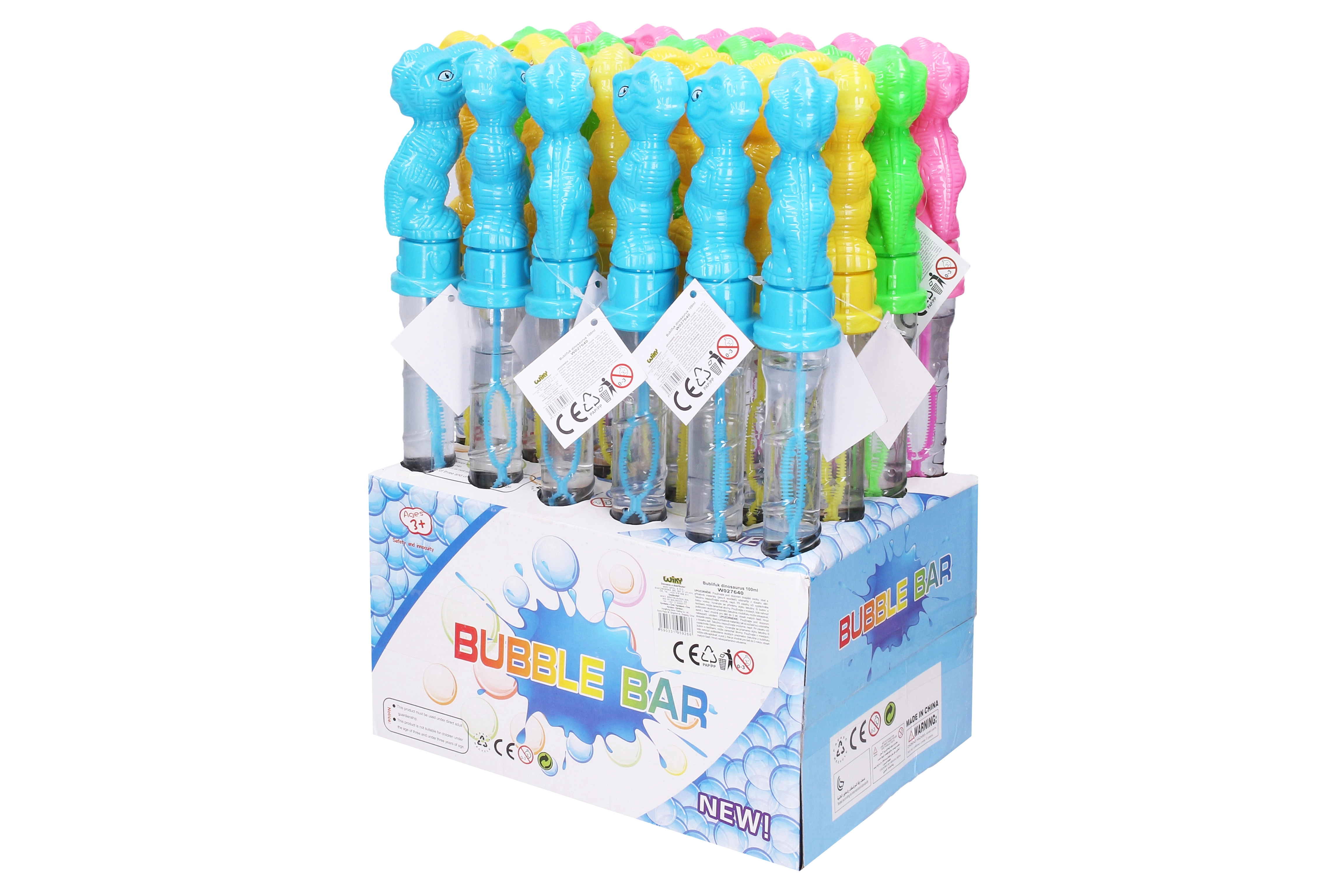Lõbus dinosaurusekujuline mullipuhuja rõõmustab nii väikseid kui suuri. Tänu mahule 100 ml ja pikkusele 35 cm saad teha hulgaliselt ilusaid mulle. Saadaval on 4 värvitooni – sinine, kollane, roheline ja roosa.