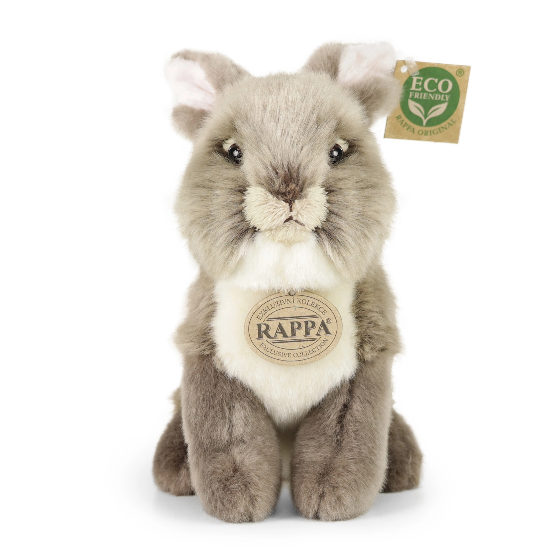 See istuv 20 cm plüüsjänes on valmistatud kõrgekvaliteedilisest plüüsist. See kuulub eksklusiivsesse plüüsmänguasjade kollektsiooni, mis keskendub realistlike loomade kujutamisele. Mänguasi on keskkonnasõbralik tänu ECO Friendly täidisele, mis on valmistatud taaskasutatud PET-pudelitest. Täidis on eristamatu standardsest ning täiesti ohutu lastele.